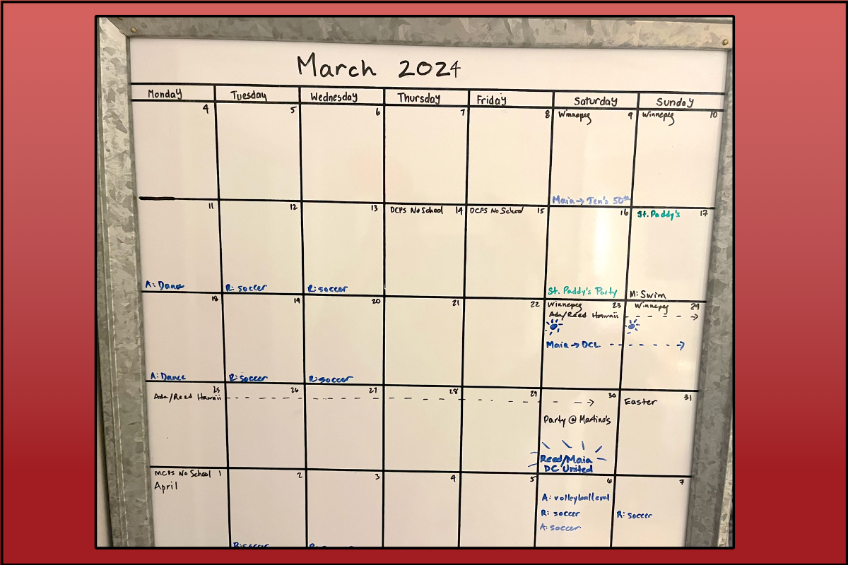 - Are there any upcoming events that require preparation or planning? In my case, one kid has a school chorus trip to Busch Gardens in May, and I have two big back-to-back work trips in June. Both of these things require special packing, materials, permission slips, and more. I am blocking that time in the calendar now, right down to the pickup at 11 PM after the Busch Gardens trip. It can feel like a pain to do a close read of the information sent my way the first time, but it prevents paper pile up.