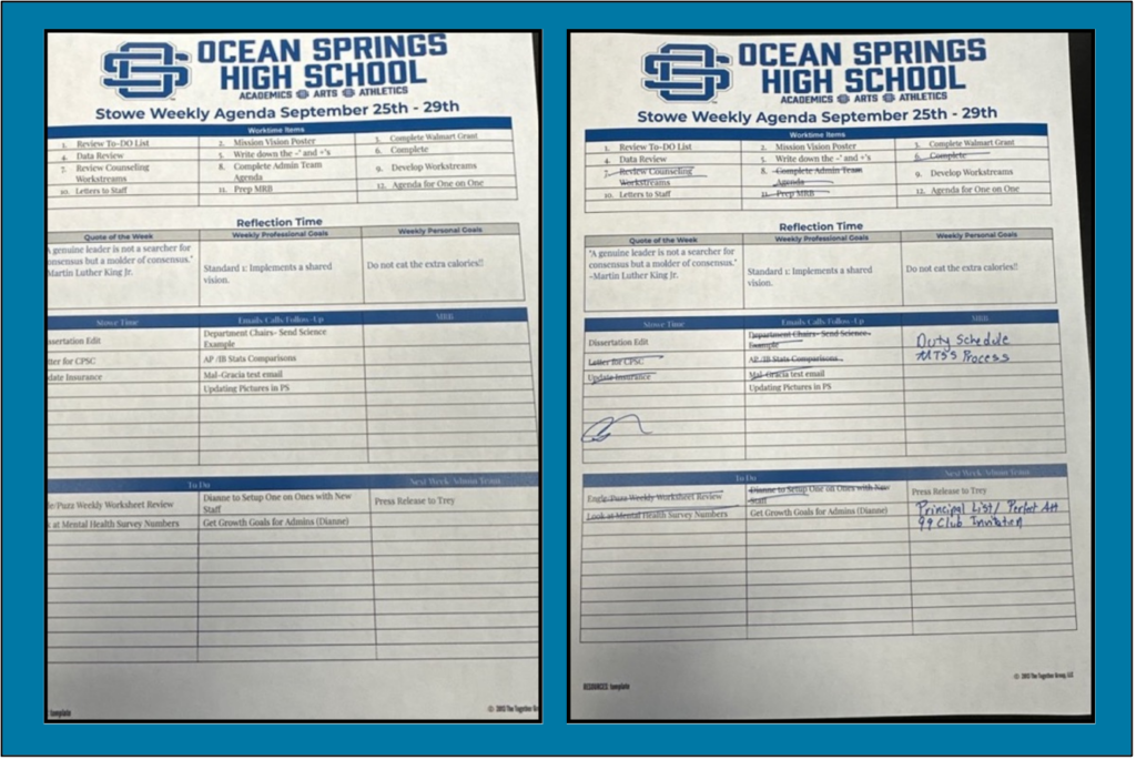 And my third tool is my Google Calendar . . . I was so reluctant to go digital with my calendar, but I was spending time duplicating into my Weekly Worksheet. It was too much work so I had to modify. When I got to Ocean Springs (my current school district in Mississippi), I went all-in on my Google calendar. It is shared with my assistant principals, counselors, and support staff.