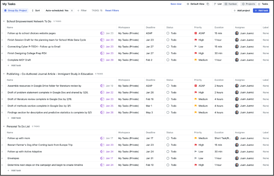I rely on the Motion App, an AI assistant that simplifies my life in numerous ways. It acts as a central hub, seamlessly merging my calendars, functioning as a project manager, assisting with task management, and even scheduling meetings as needed. One remarkable feature is its ability to autonomously schedule my tasks, considering factors like importance, timing, and my calendar’s availability. Even if I happen to miss completing a task, the AI assistant automatically reschedules it based on available time slots. This capability has been a game-changer, significantly increasing my productivity and saving me a substantial amount of time each week. And as you can see from my task list (screenshot below), I need all the time I can get! (Editor’s note: anyone else using AI to help stay Together? Please write me here with what tricks you have tried!)