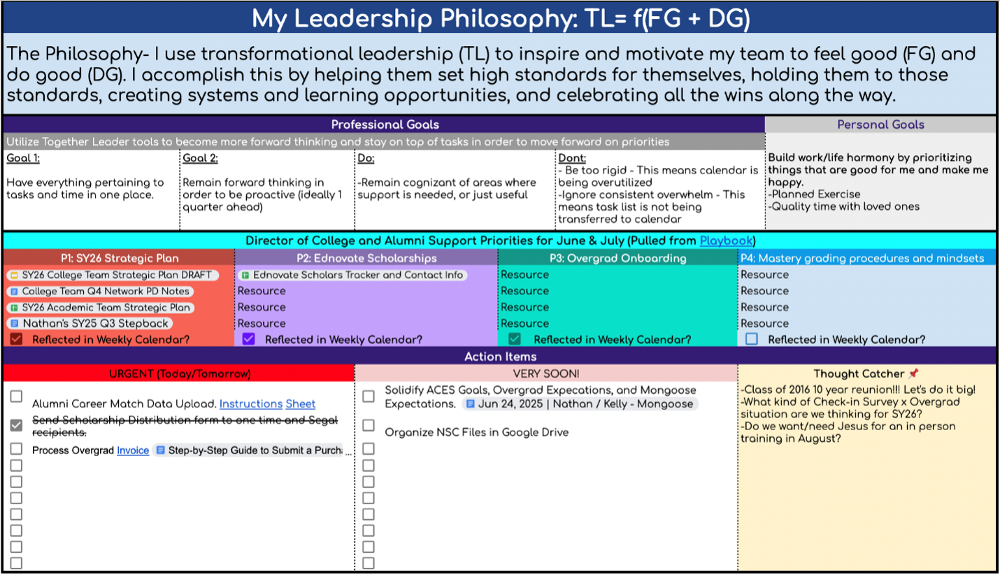 - Professional Goals. These were initially geared toward my Togetherness, but I will edit them to be more role-focused and add personal goals up top for focus.
