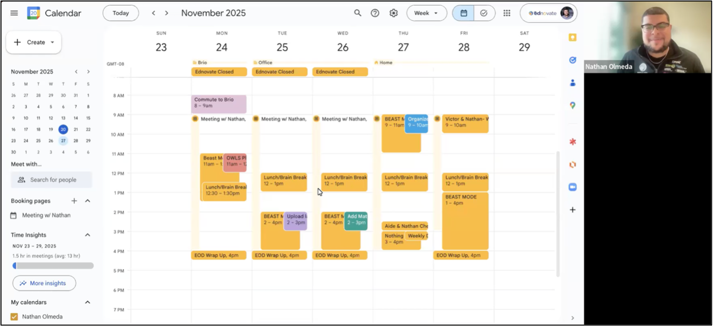 I was learning so much from so many people when I first transitioned into my role. I feel like I didn’t tell them that they taught me something. I needed to block time to do that regularly. Especially when I moved from a school-based role to a hybrid role, I wanted to make sure I had a human opportunity to connect with people.